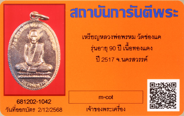 เหรียญ90ปี หลวงพ่อพรหม วัดช่องแค เนื้อทองแดง ปี2517 เหรียญนี้พิมพ์คมชัด ผิวสวยเดิมครับ...#3