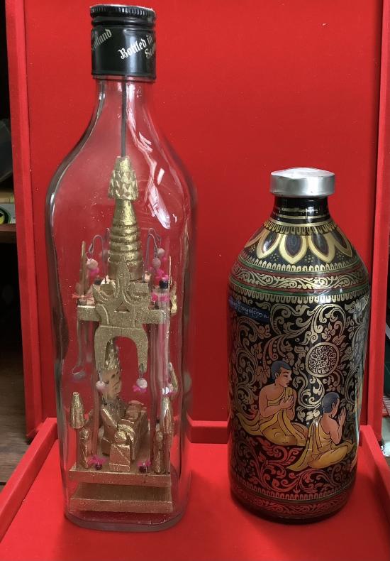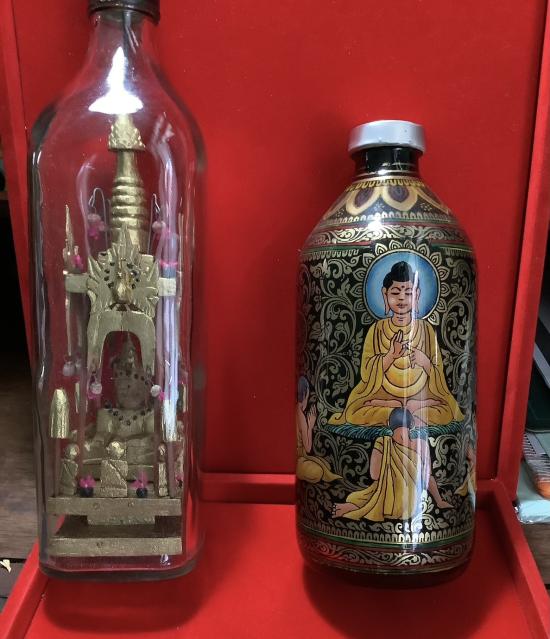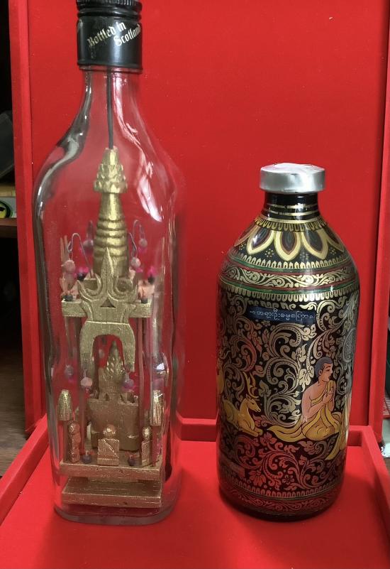 (เคาะเดียวแดง) พระมหามุนี กับภาพวาด พระพุทธเจ้ากับอัครสาวก ในขวดแก้ว งานฝีมือจากพม่า