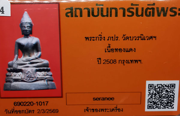 พระกริ่งภปร. วัดบวรนิเวศฯ เนื้อทองแดงรมดำ กริ่งดัง ปี2508 จ.กรงเทพฯ + บัตรG-pra สภาพสวยเดิมค่ะ |
