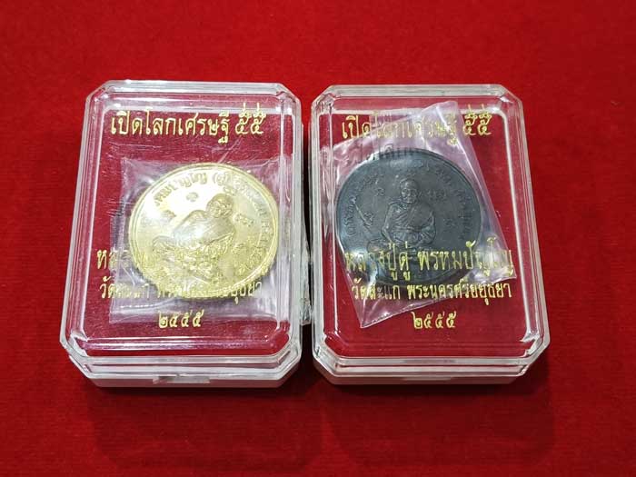 วัดใจ 100 เดียวแดง +++ เหรียญขอบสตางค์ หลวงปู่ดู่ รุ่นเปิดโลกเศรษฐี 55 (เนื้อทองฝาบาตร + รมผิวซาติน) สวยพร้อมกล่องเดิม