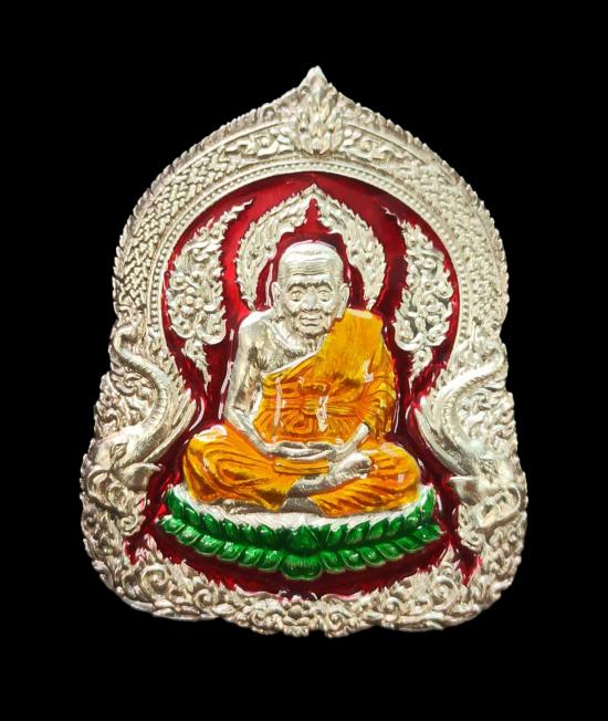 เหรียญเสมาลายฉลุหน้าหลวงปู่ทวดหลังยันต์ เนื้อเงินลงยาแดง เลข 3