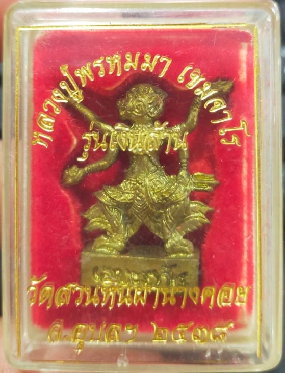 หนุมาน 4 กรแผลงฤทธิ์ รุ่น เงินล้าน หลวงปู่พรหมมา วัดถ้ำสวนหินผานางคอย เนื้อทองฝาบาตร ปี2538 กล่องเดิมงามๆ |