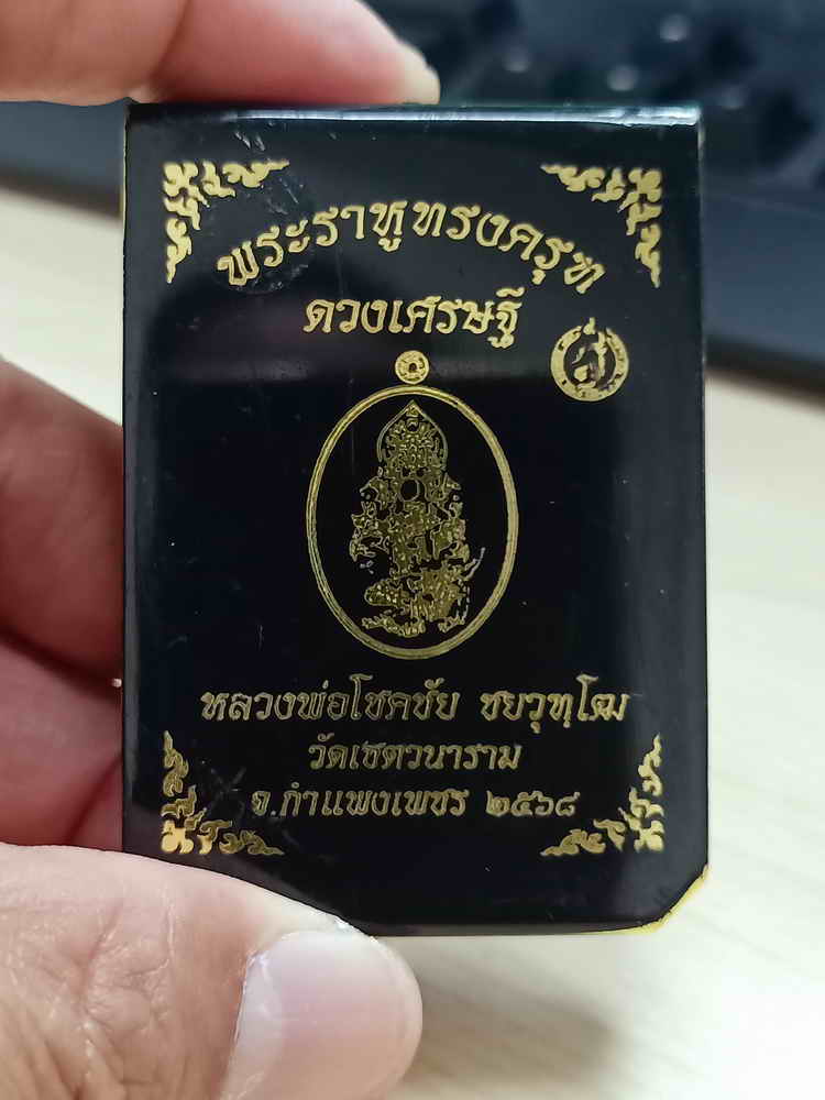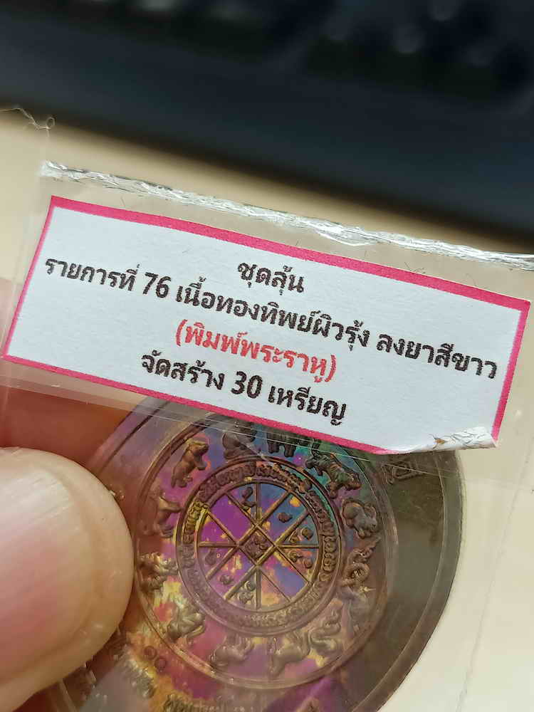 วัดใจ 100 เหรียญพระราหูทรงครุฑ ดวงเศรษฐี หลวงพ่อโชคชัย วัดเชตวนาราม(น้ำดิบ) จ.กำแพงเพชร 2568 ทองทิพย์ผิวรุ้ง ลงยาขาว หมายเลข 10 สร้าง 30 กล่องเดิม |