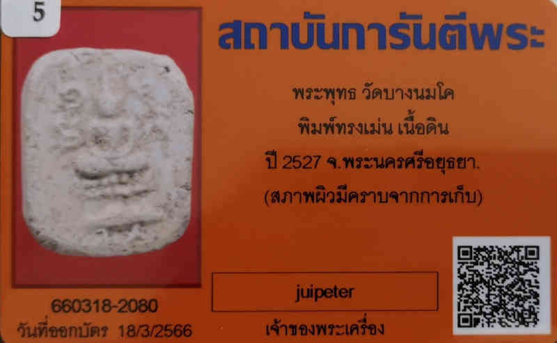 องค์นี้เป็นพิมพ์ทรงเม่น เด่นด้านกันโรคกันภัย กันสัตว์มีพิษได้เป็นอย่างดี พระองค์นี้ผงอุดเดิม ๆ น่าบูชา และ มาพร้อมบัตรรับประกันพระแท้จาก บริษัท การันตีพระ จำกัด สบายใจได้