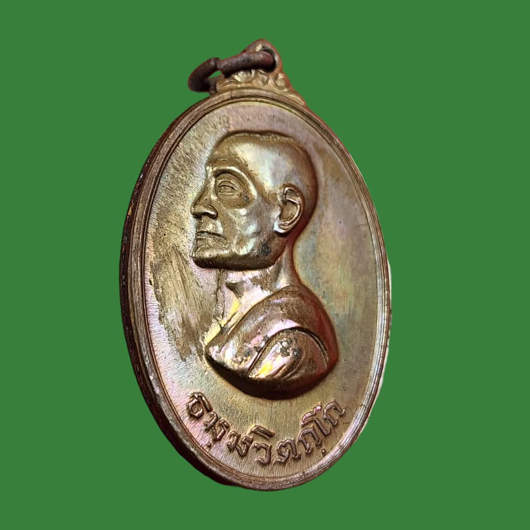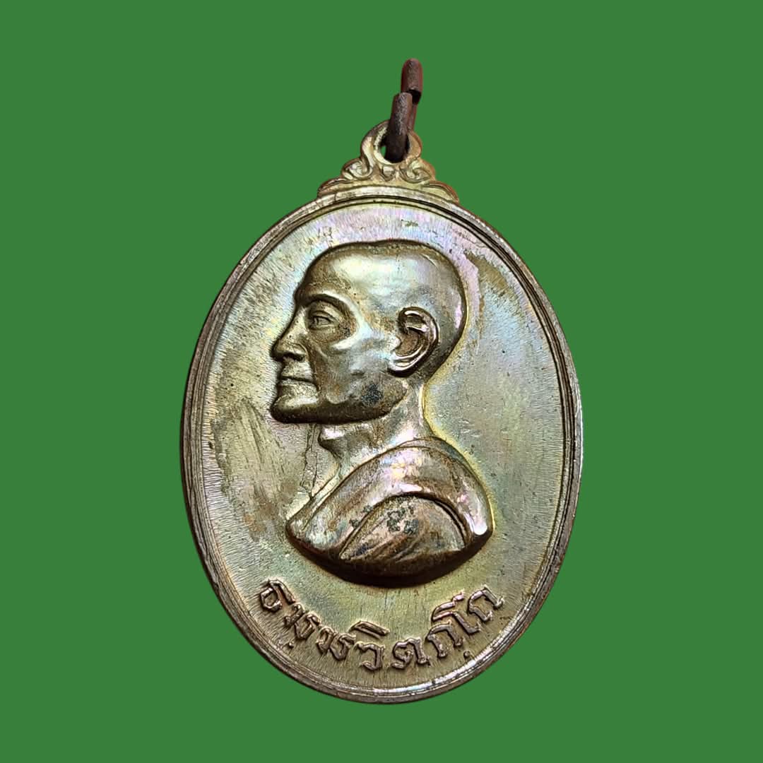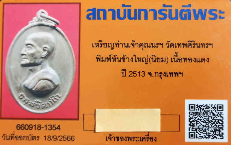 เหรียญท่านเจ้าคุณนรฯ วัดเทพศิรินทรฯ พิมพ์หันข้างใหญ่(นิยม) เนื้อทองแดง ปี 2513 พร้อมบัตรรับรอง