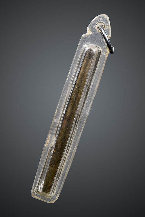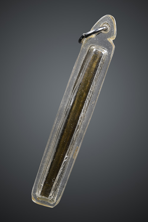 ตะกรุดเนื้อทองแดงไม่ทราบที่ยาว 5 เซนติเมตร เลี่ยมพลาสติกพร้อมใช้
