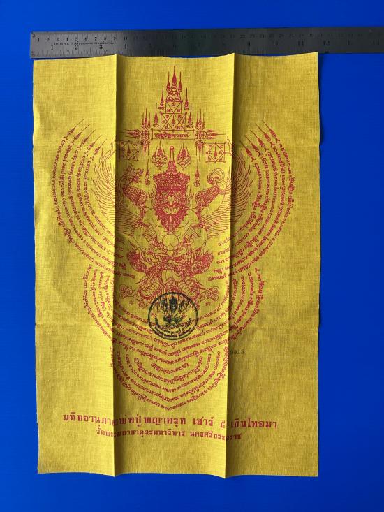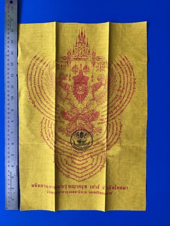 ผ้ายันต์ พญาครุฑเสาร์5 เงินไหลมา วัดพระมหาธาตุวรมหาวิหาร จ.นครศรีธรรมราช สีเหลือง ขนาด A 3 ( 11.5 นิ้ว x 16.5 นิ้ว ) |