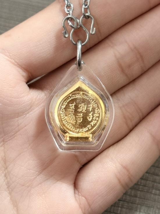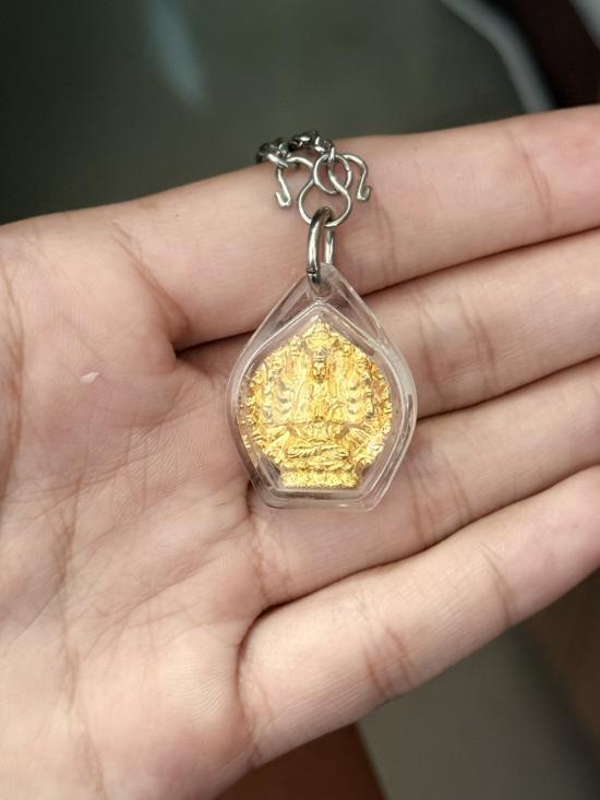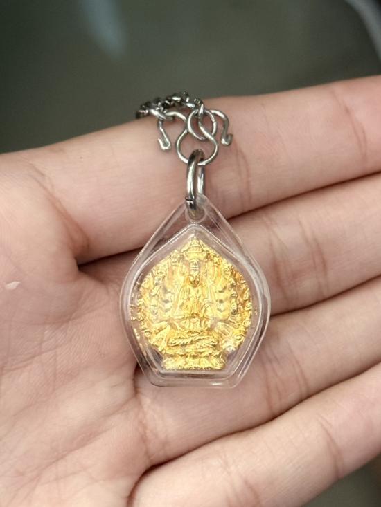 หรียญหล่อ เจ้าแม่กวนอิมพันมือ ออกที่ตำหนักเตาปูน เนื้อกะไหล่ทอง พร้อมสร้อย