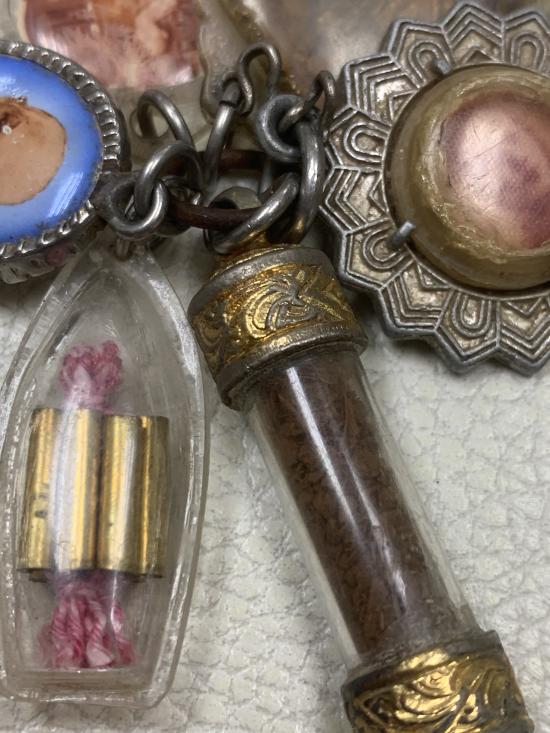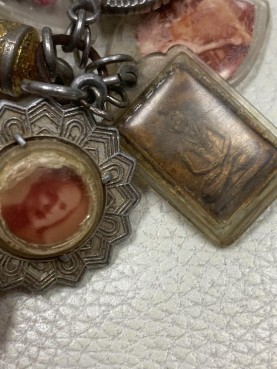 ชุดล็อกเก็จ รูปถ่ายหลังจารตะกรุดชานหมาก เหรียญสมเด็จหลังฤาษี เก่าไม่ทราบเกจิ