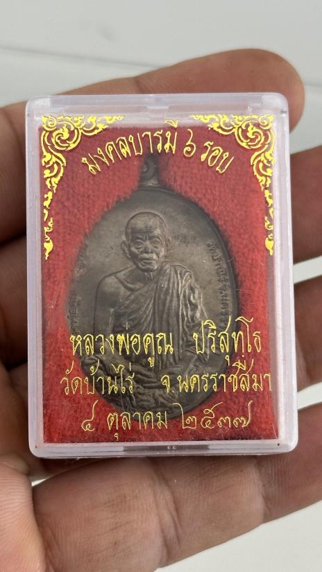 ชื่อพระเครื่อง ต้นทุน 3000 วัดใจไปเลย เหรียญหกรอบหลวงพ่อคูณปริสุทโธ เนื้อนวะโลหะ ปีพ.ศ. 2537 กล่องเดิมสภาพสวย
