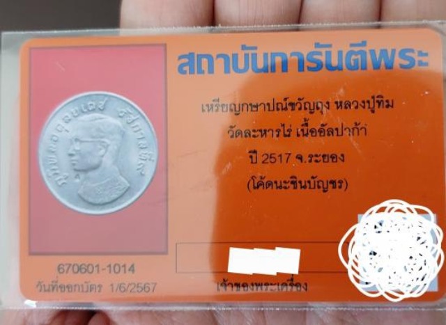 เหรียญกษาปณ์ขวัญถุง หลวงปู่ทิม วัดละหารไร่ ปี 2517 (โค๊ดนะชินบัญชร) พร้อมบัตรรับรอง สวยๆครับ