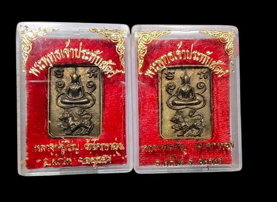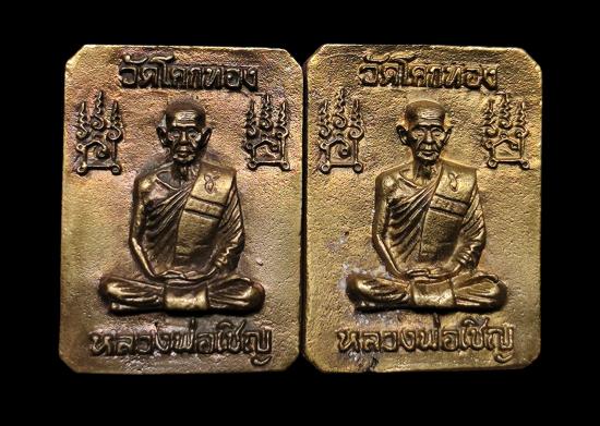 เหรียญหล่อ หลวงพ่อเชิญ วัดโคกทอง พิมพ์ประทับราชสีห์ ( สิงห์3) หลังรูปเหมือน ปี2534 เนื้อฝาบาตร จ.อยุธยา พร้อมกล่องเดิม ( จำนวน 2องค์) |