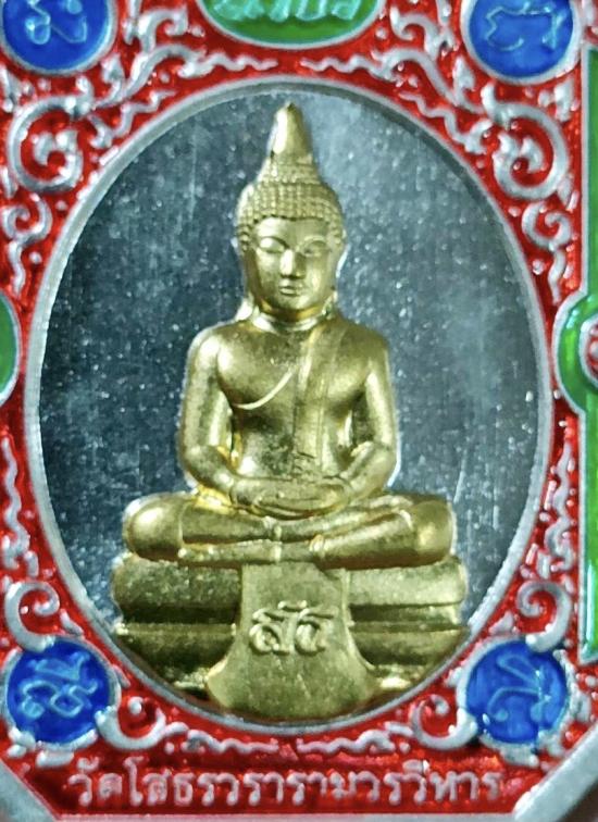 เหรียญแสตมป์หลวงพ่อโสธร รุ่นประวัติศาสตร์ ครบรอบ 255 ปี เนื้อเงินลงยาขอบราชาวดีหน้ากากทองคำ ตอกโค๊ต สธ ตอก ง ตอกกรรมการ ตอกหมายเลข 6