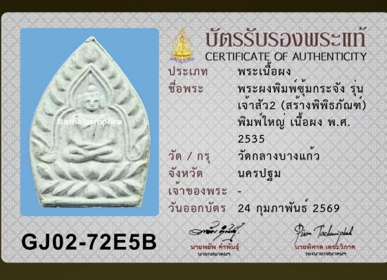 เจ้าสัวสองวัดกลางบางแก้ว ปี 2535 พิมพ์ใหญ่ เนื้อผง พร้อมบัตรรับรองสมาคม