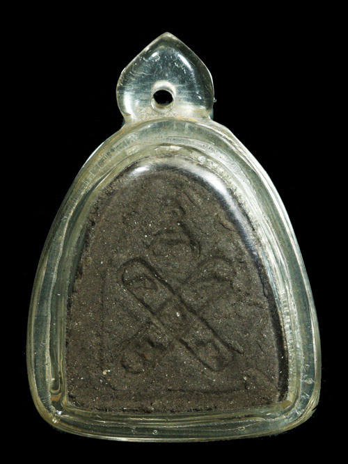 พระปิดตา รุ่นดูดทรัพย์ หลังยันต์กระบองไขว้ หลวงพ่อพูลทรัพย์ (ศิษย์เอกเจ้าคุณศรี) วัดอ่างศิลา จ.ชลบุรี เนื้อผงคลุกรัก