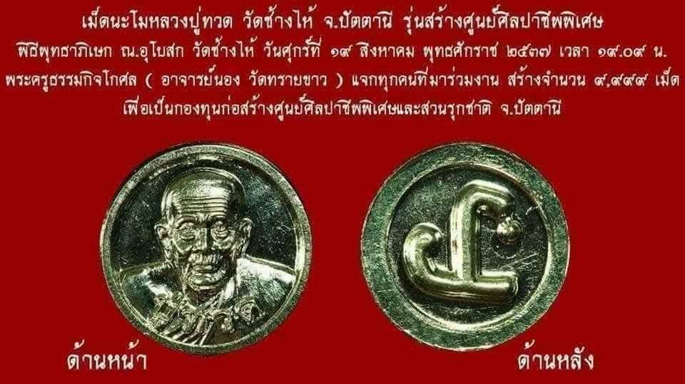 เคาะเดียวจ้า...เม็ดนะโม หลวงปู่ทวด วัดช้างไห้ ปี37 เนื้ออัลปาก้า อาจารย์นองปลุกเสก เลี่ยมทองคำแท้จ้า สวยมากจ้า