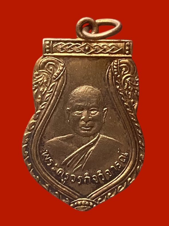 เหรียญพระครูวรกิจวิจารณ์ วัดแก้วฟ้าล่าง ปี 2495 เนื้อทองแดงกะไหล่ทอง สวยเดิมครับ |
