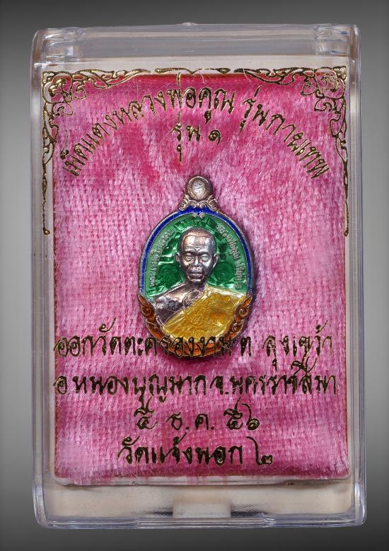 เหรียญเม็ดแตง หลวงพ่อคูณ รุ่นกายเทพ เนื้อเงินลงยาสีเขียว เลข 14 |