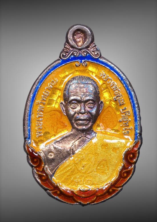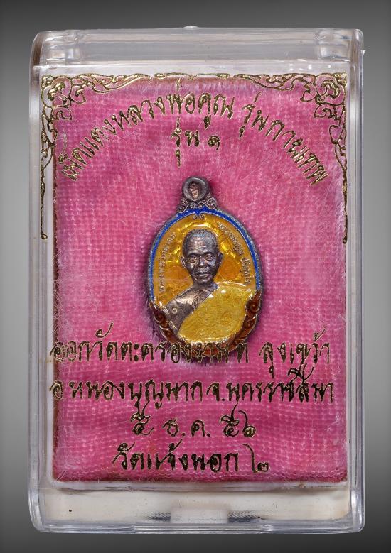 เหรียญเม็ดแตง หลวงพ่อคูณ รุ่นกายเทพ เนื้อเงินลงยาสีเหลือง เลข 98 |