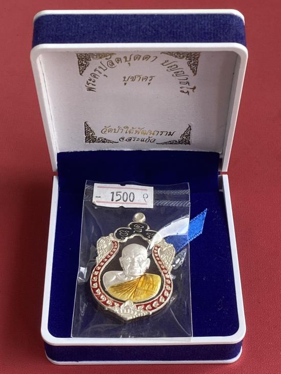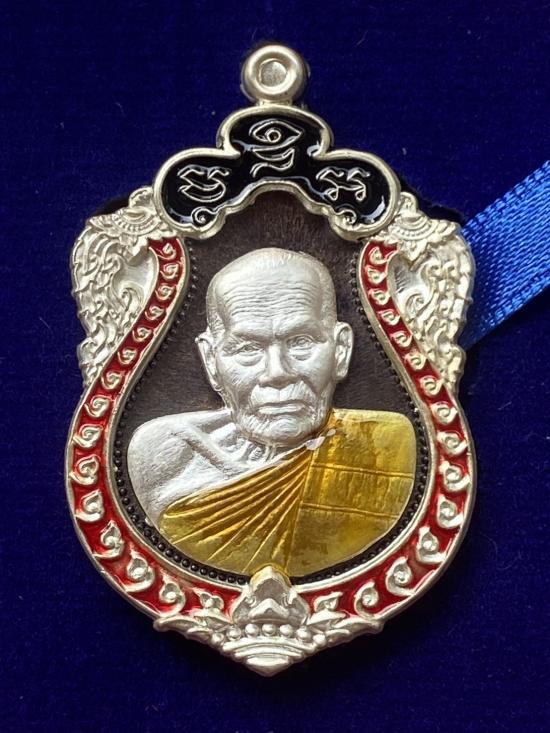 เคาะเดียวแดง หลวงปู่บุดดา รุ่น บูชาครู เนื้อ นวะหน้ากากเงิน ขอบเงินลงยา