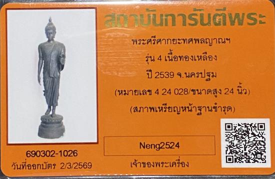 1 เดียวใน g pra Limited edition พระศรีศากยะทศพลญาณ ประธานพุทธมณฑลสุทรรศน์ (พระ 25 พุทธศตวรรษ) พุทธมณฑล นครปฐม ปี 2539 เลข 4 -24 -028 รุ่น 4 สูง 24 นิ้ว รวมฐานสูง 28 นิ้ว + บัตร g pra สวยนางฟ้าครับผม