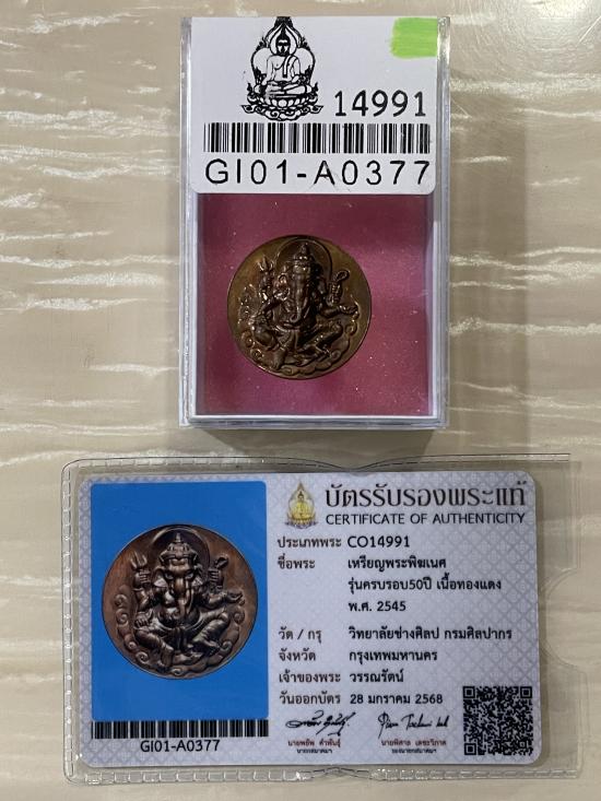 (เคาะแดง1900) +บัตรสมาคม เหรียญพระพิฆเนศ กรมศิลปากร ครบ50ปี