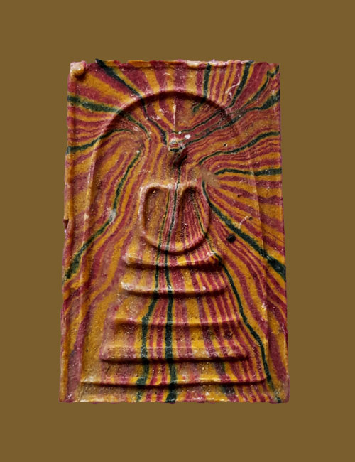 พระสมเด็จสายรุ้ง หลังยันต์นูน วัดศีลขันธาราม จังหวัดอ่างทอง เนื้อผงพุทธคุณ จัดสร้างเมื่อปี พ.ศ.2513 โดยท่านเจ้าคุณสนิท (สนิท ทองสีนวล) พระราชาคณะ อดีตเจ้าอาวาสวัดขณะนั้น ท่านนับถือกันกับท่านเจ้าคุณนร วัดเทพศิรินทร์ฯ กทม. จึงนำพระเครื่องทั้งหมดหลายพิมพ์ รวมทั้งมวลสารที่เหลือจากการกดพิมพ์พระเข้าพิธีอธิษฐานจิตครั้งสุดท้าย ครั้งใหญ่ที่สุดของท่านเจ้าคุณนรฯ ณ อุโบสถวัดเทพศิรินทร์ เมื่อวันที่ 5 ธันวาคม พ.ศ.2513 ถือว่าเป็นหนึ่งในพระสายท่านเจ้าคุณนรฯอีกรุ่นด้วย พระสมเด็จรุ่นนี้จะเป็นพระผงน้ำมัน มีหลากหลายสี ด้านหลังจะเป็นยันต์พร้อมฉายาท่านเจ้าคุณนรฯ อนึ่งท่านเจ้าคุณสนิทเป็นศิษย์รุ่นน้องของท่านเจ้านรฯ โดยมีสมเด็จพระพุทธโฆษาจารย์(เจริญ)เป็นพระอุปัชฌาย์ บวชและศึกษาอยู่ที่วัดเทพศิรินทร์มาตลอดจนไปประจำอยู่ที่วัดศีลขันธ์ อ่างทอง จึงไม่แปลกที่ท่านจะสนิทสนมและรู้จักท่านเจ้านรฯและทางสายวัดเทพศิรินทร์ ตัวหลวงพ่อท่านเจ้าคุณสนิทเองในสมัยโน้นได้รับนิมนต์ไปปลุกเสกพระอยู่เรื่อยๆ ดังนั้นเรื่องพุทธาคมของท่านคงไม่ธรรมดาแน่นอน