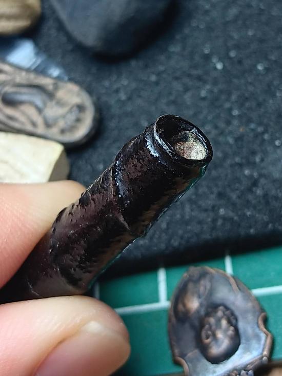 วัดใจ ตะกรุดไม่ทราบที่ ถักเชือก พอกผง ลงรัก ขนาด 2 นิ้ว เอกลักษณ์คล้ายๆปู่หมุนวัดซับลำใย ใครรู้ที่จัดไปครับ |