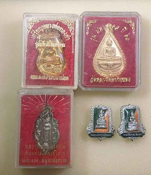 เหรียญพระพุทธ 3 เหรียญ +เข็มกลัดหลวงพ่อโสธร วิทยาลัยครู แปดริ้ว 2 ชิ้น |