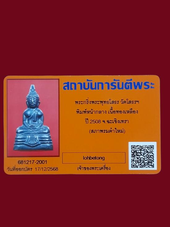 หลวงพ่อโสธร พิมพ์หน้ากลาง พร้อมบัตร