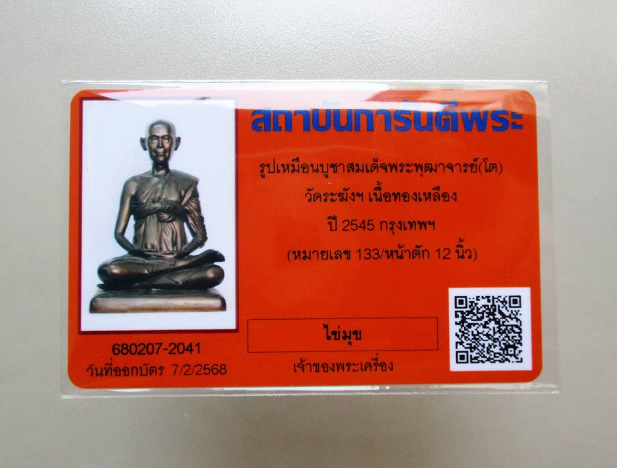 สมเด็จพระพุฒาจารย์ ( โต พฺรหฺมรํงสี ) รุ่น 214 ปีชาตกาล วัดระฆังโฆสิตารามวรมหาวิหาร กทม. หน้าตัก 12 นิ้ว ตอกโค๊ต ตอกเลข ล.ป.หมุนร่วมปลุกเสก พ.ศ.2545 เนื้อโลหะผิวเดิม สวยสมบูรณ์พร้อมบัตรการันตี !!