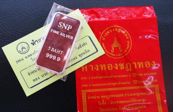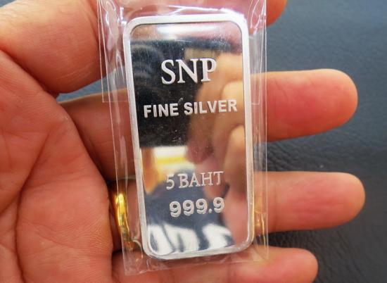 เงินแท่งบริสุทธิ์ 999.9% ขนาด 5 บาท หรือ FINE SILVER 999.9% น้ำหนัก 5 บาท ใหม่ๆเลยครับ ตอนนี้ราคาย่อลงมาให้เก็บแล้วครับ |