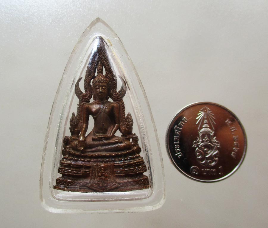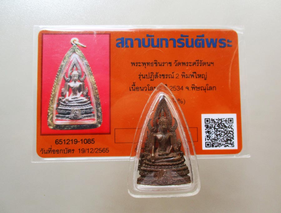 พระพุทธชินราชหล่อบรรจุเม็ดกริ่ง วัดพระศรีรัตนมหาธาตุ จ.พิษณุโลก รุ่นปฏิสังขรณ์ 2 พ.ศ.2534 พิมพ์ใหญ่ เนื้อนวะโลหะ พร้อมบัตรการันตีพระ |