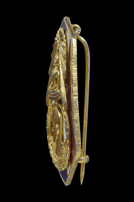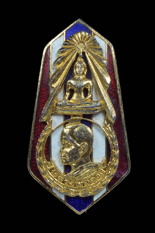 เข็มกลัดครึ่งองค์หันข้าง ( รุ่นแรก ) รุ่น เสาร์ 5 วัดสระแก้ว ( เนื้อกะไหล่ทอง ลงยาลายธงชาติ ) พ.ศ.2523 ** 6 **