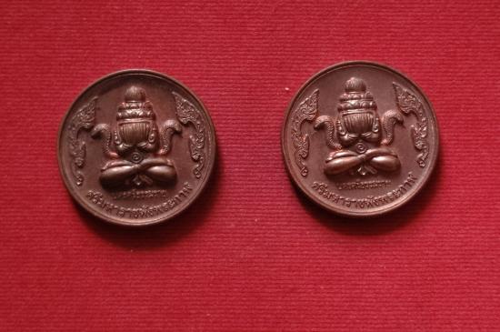 เหรียญปิดตาพังพกาฬรุ่นสองแผ่นดินปี48พิธีใหญ่ครับเนื้อทองแดงผิวสวยๆจำนวน2องค์ด้านหลังยันต์พลังจักรวาลคุ้มดวงหนุนดวงแก้ปีชงขนาด3.2เซนขอบเฟืองแบบสตางค์สภาพสวยครับ |
