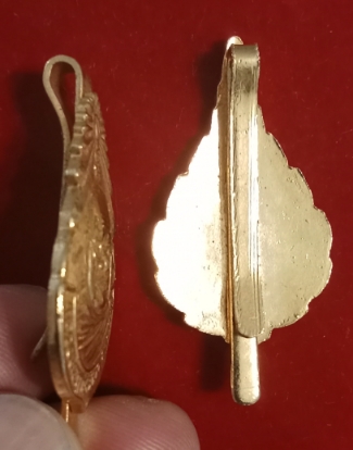 เคาะเดียว แหนบกันรังสีหลวงพ่อฤาษี วัดท่าซุง 2 ชิ้น แบบโบว์รุ่น5 และแบบพัดยศไม่ทราบรุ่น กระไหล่ทอง |