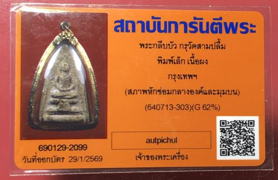พระกลีบบัว พิมพ์เล็ก กรุวัดสามปลื้ม กรุงเทพฯ พร้อมเลี่ยมทองพร้อมใช้ พร้อมบัครการันตีพระตามสภาพที่ระบุ