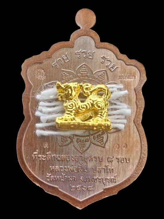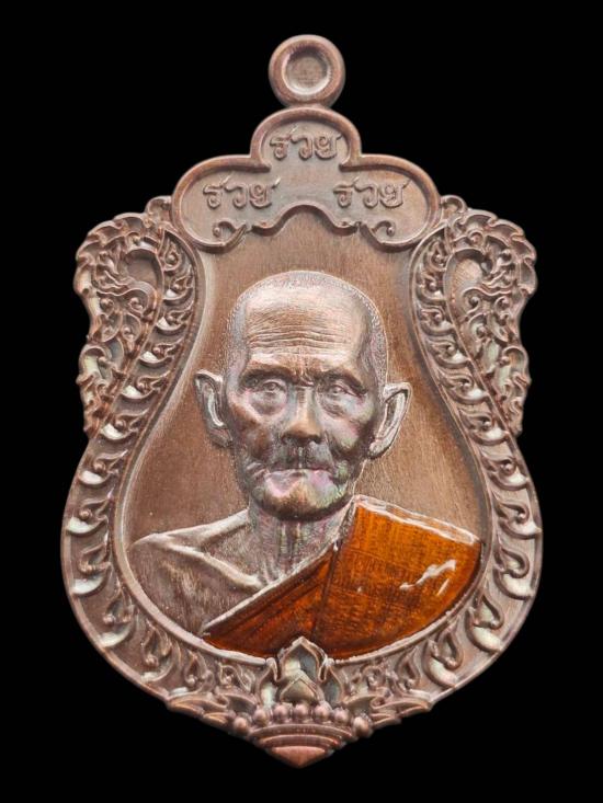 หลวงปู่ฝั้น ปสาโท วัดหน้าผา จ.เพชรบูรณ์ เนื้อทองแดงผิวมันปู ลงยาจีวร |