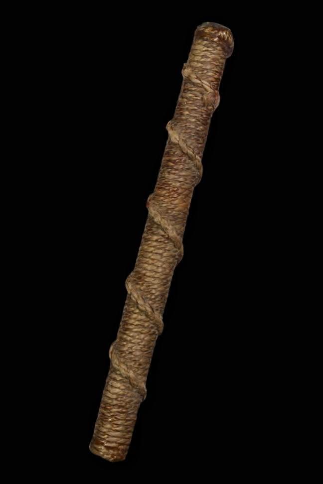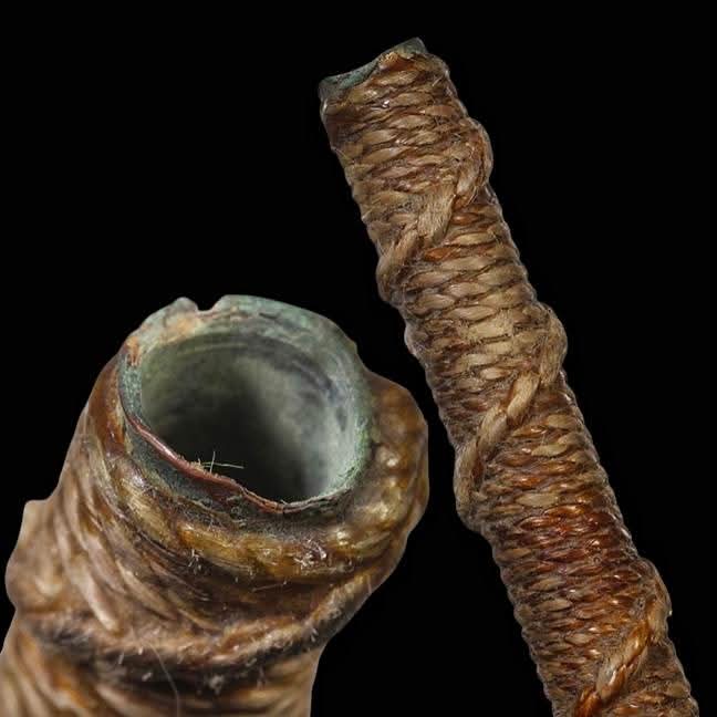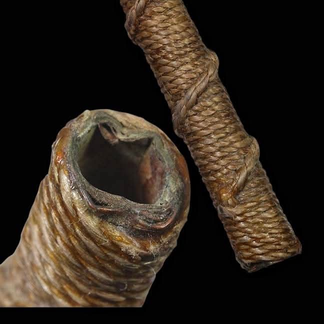 ตะกรุดเนื้อทองแดง ถักเชือกลงแล็คเกอร์บางๆ ไม่ทราบที่? |