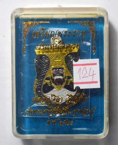 เหรียญพระราหู รุ่น เหนือดวง 68 หลวงปู่มหาศิลา วัดพระธาตุหมื่นหิน เนื้ออัลปาก้า ลงยา โค๊ด เลข 124