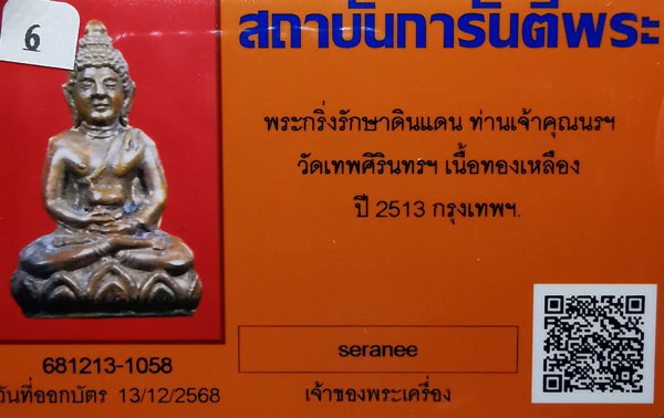 พระกริ่งรักษาดินแดน ท่านเจ้าคุณนรฯ วัดเทพศิรินทร์ฯ เนื้อทองเหลือง กริ่งดัง ปี2513 ตอกโค๊ตดาบไขว้ กรุงเทพฯ + บัตรG-pra สภาพเดิมค่ะ