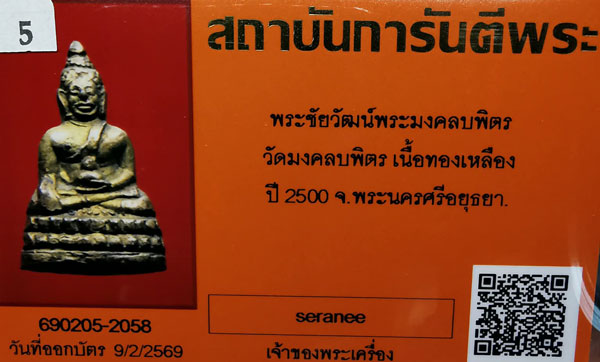 พระชัยวัฒน์พระมงคลบพิตร วัดมงคลบพิตร เนื้อทองเหลือง กริ่งดัง ปี2500 จ.พระนครศรีอยุธยา + บัตรG-pra สภาพเดิมค่ะ |