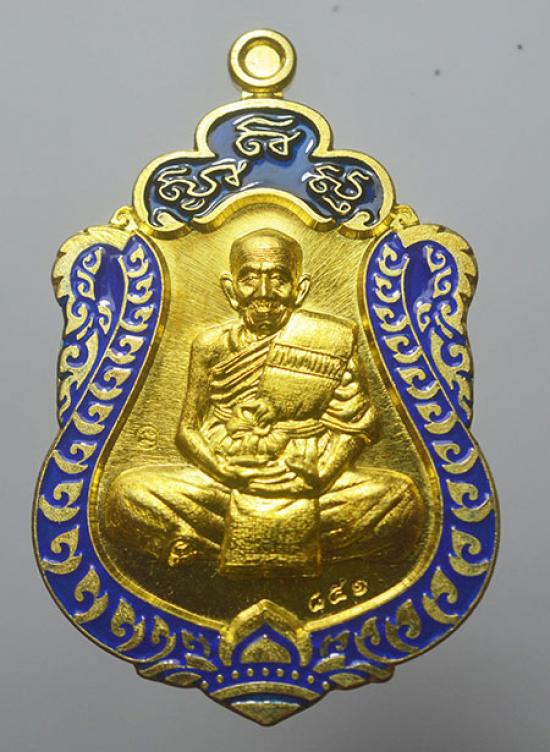 เหรียญเสมา สมปราถนา มหาเศรษฐี 62 หลวงปู่แสน วัดบ้านหนองจิก ศรีสะเกษ เนื้อทองทิพย์ ลงยอขอบน้ำเงิน เลข 851