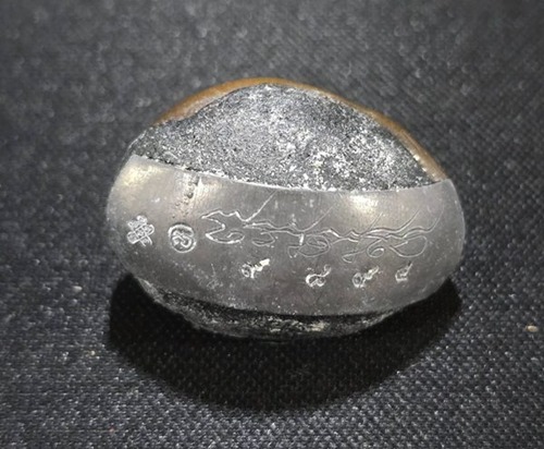 สภาพสวย .. เบี้ยแก้ อุดผงพรายกุมารคลุกรักชันโรง พิธีในโบสถ์วัดระหารไร่ ปี 54 หลวงปู่บัว หลวงปู่คำบุ ปลุกเสก .. ตอกโค๊ตรันนัมเบอร์ + กระดาษยันต์สารพัดกัน