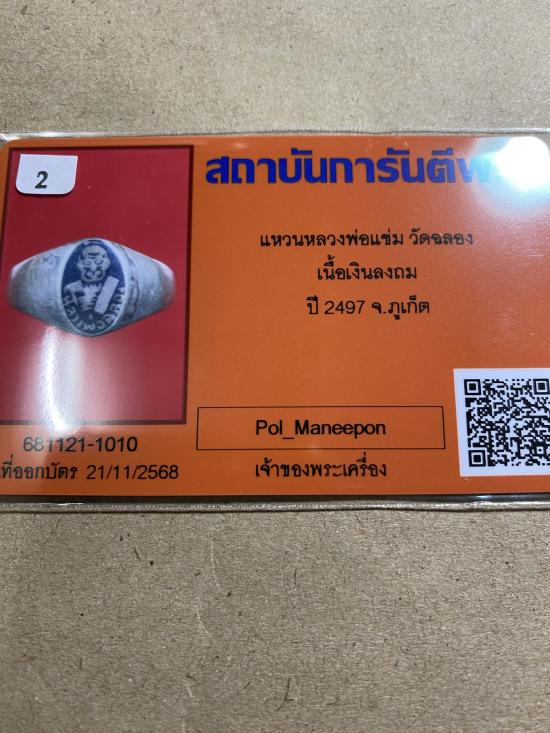 แหวนหลวงพ่อแช่ม พิมพ์หน้ากะโหลก เนื้อเงินลงถมโบราณ วัดฉลอง จ.ภูเก็ต ปี 2497