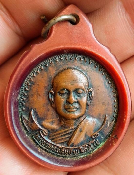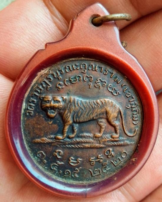 เหรียญหลวงพ่อสมชาย รุ่นเสือยืน วัดเขาสุกิม จันทบุรี ปี20 เนื้อทองแดง