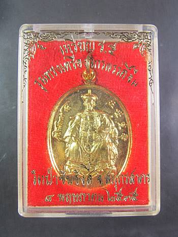 !! เคาะเดียว !! เหรียญพระรูป รัชกาลที่5 รุ่นทรงเครื่องจักรพรรดิ์จีน หลังพระนารายณ์ทรงครุฑ วัดป่าชัยรังสี สมุทรสาคร 2535 เนื้อกะไหลทอง เจ้าคุณธงชัย ปลุกเสก กล่องเดิม