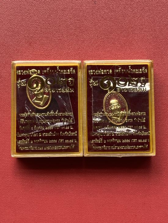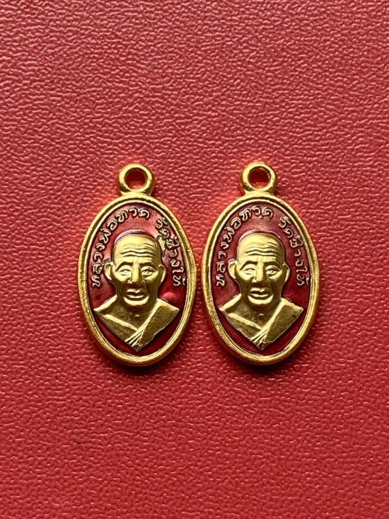เคาะเดียวแดง เม็ดแตง 2องค์หลวงปู่ทวด รุ่น102ปีอาจารย์ทิม เนื้อชุบทองลงยาสีแดง |