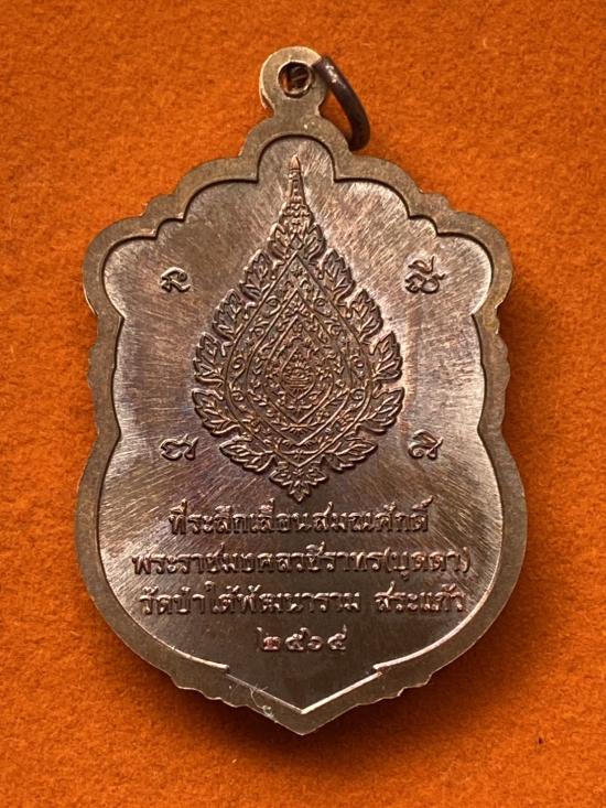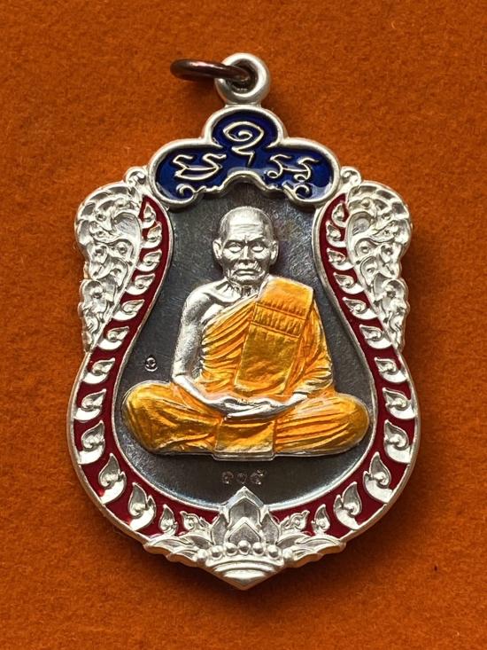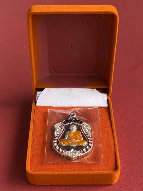 เคาะเดียวแดง หลวงปู่บุดดา รุ่น เสมาเลื่อนสมณศักดิ์ เนื้อนวะหน้ากากเงิน ขอบเงินลงยา (กล่องแทน)