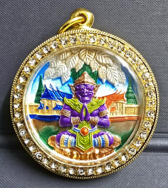 หนุมาน "สัมฤทธิ์ผล ดลบันดาน ประทานทรัพย์" วัดสนามชัย จ.อ่างทอง เพ้นลายหน้า-หลัง มาสเตอร์พีช(แบบที่ 9) ใส่ตลับอิตาลีชุบทองฝังเพชร สวยมากครับ สร้างเพียง 50 องค์ หมายเลข ๓๓....พร้อมกล่อง พระสวยมาก องค์ใ